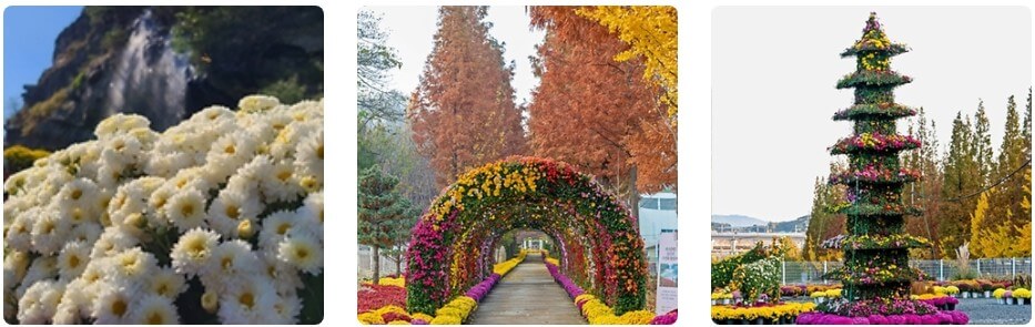 가을 정취를 만끽할 수 있는 경관연출과 독립문, 마법의성 등 대형 국화 기획 작품과 다양한 국화분제 작품이 전시됩니다. 전통민속놀이 체험, 가을 축제 분위기에 어울리는 문화예술공연 등 다양한 체험거리와 즐길거리를 만끽할 수 있습니다.